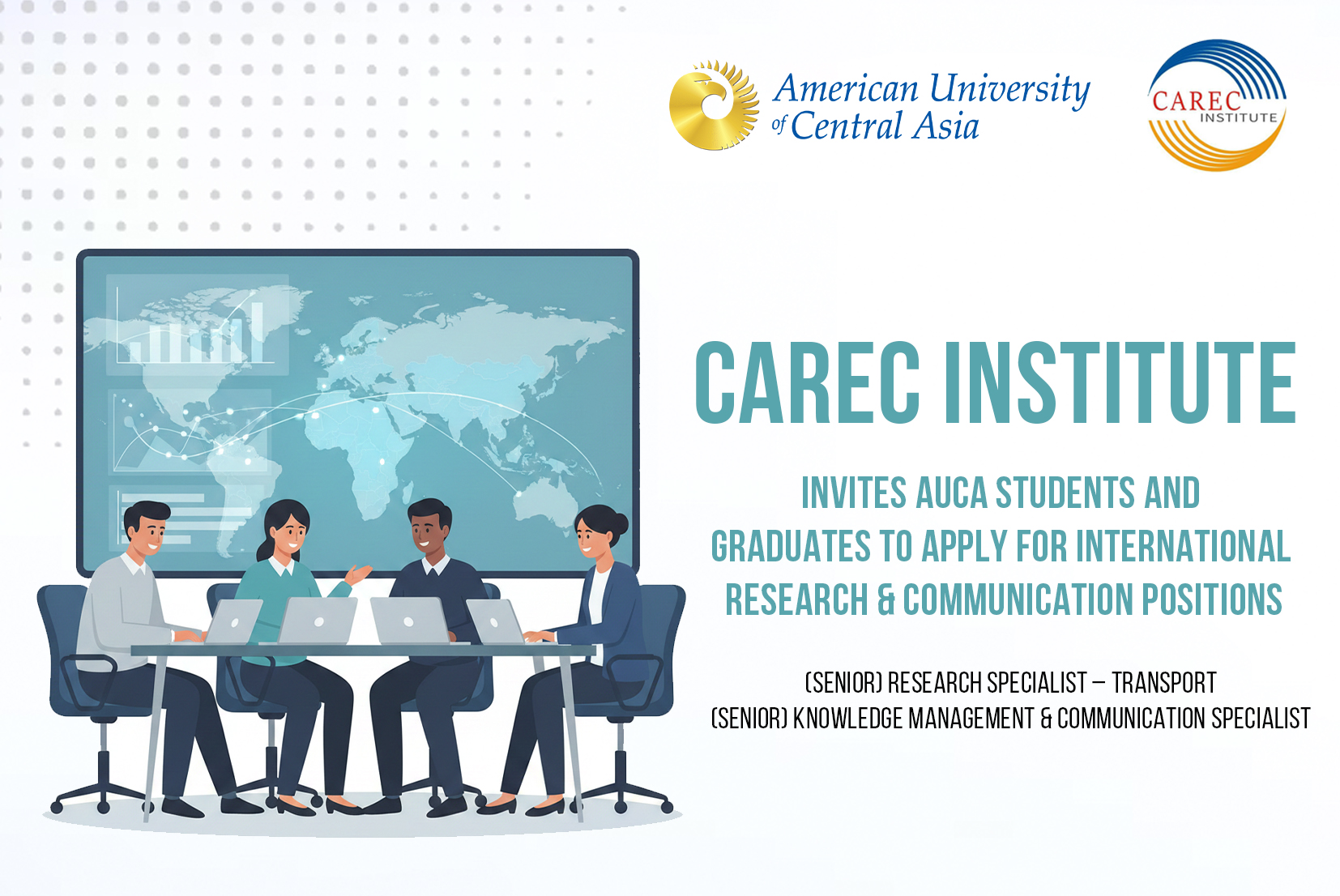 The Central Asia Regional Economic CooperationÌý (CAREC) Institute, a leading international research organization in Central Asia, invites ÂÌñ»»ÆÞ students and recent graduates to explore current international career opportunities.